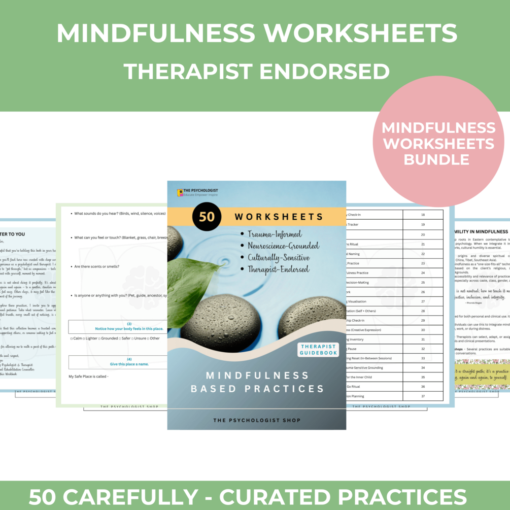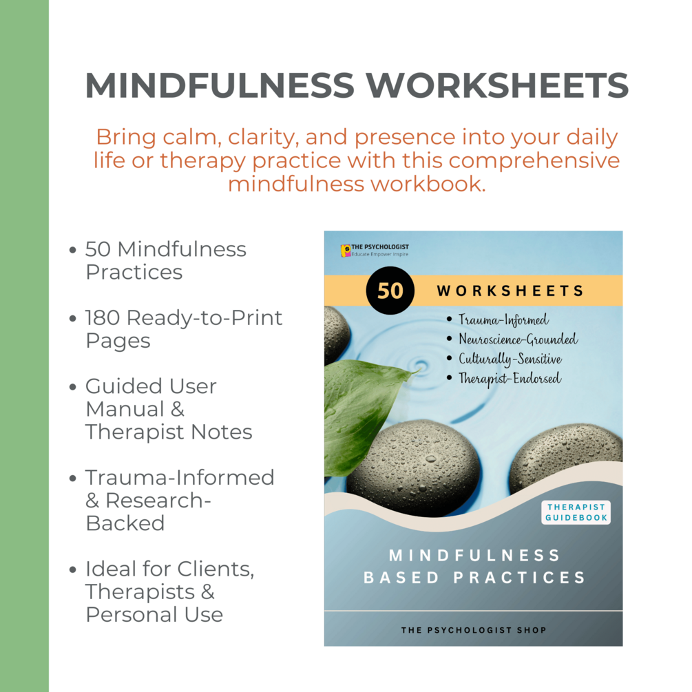 Mindfulness Worksheets Bundle | 50 Evidence-Based Practices + Therapist Guide | 180-Page Digital Workbook for Calm & Clarity