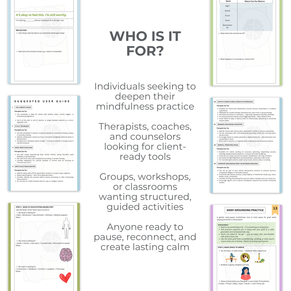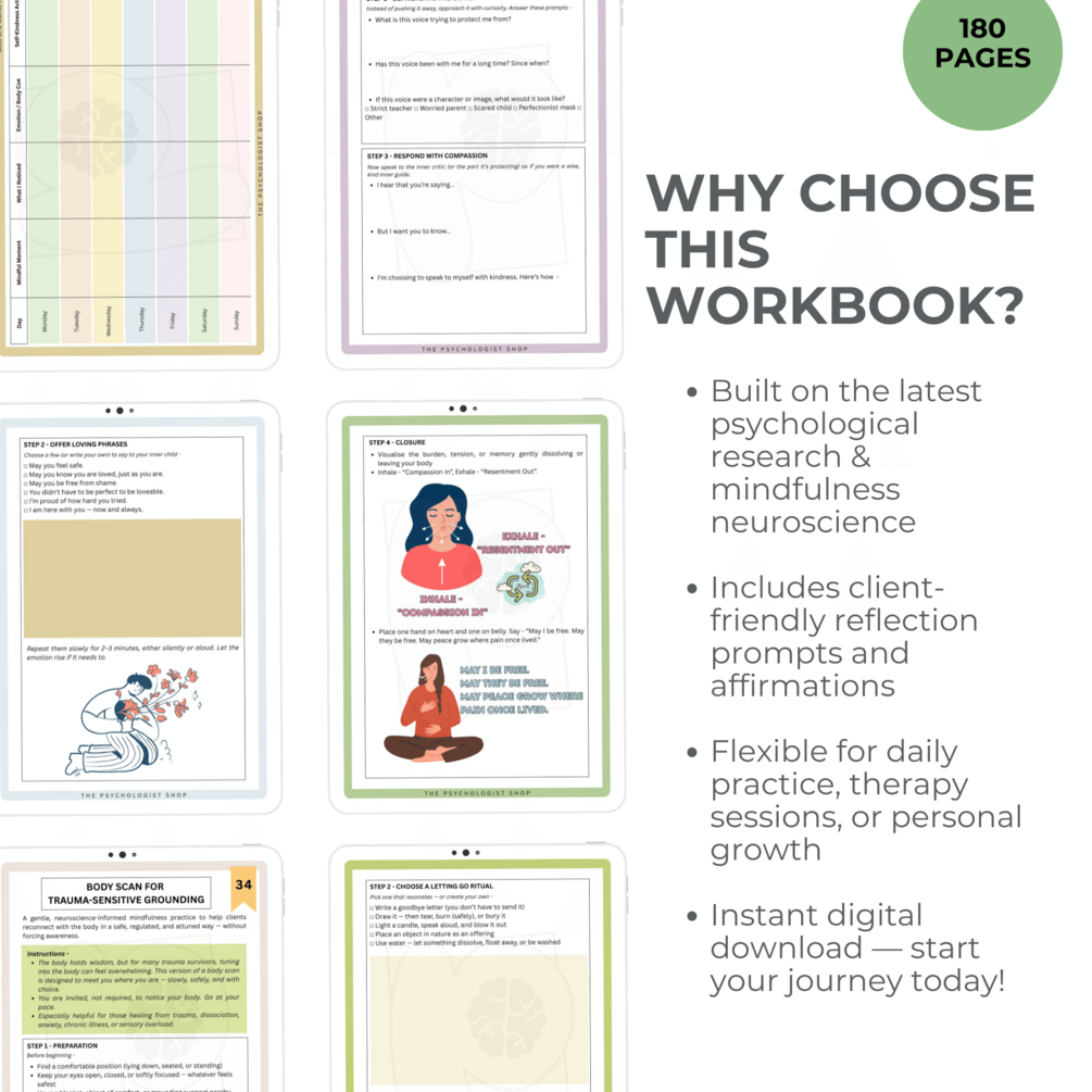 Whether you're looking to enhance your own mindfulness practice or seeking effective tools for your clients, this workbook is an invaluable asset. With its user-friendly design and comprehensive content, it’s perfect for anyone committed to personal growth and emotional well-being.